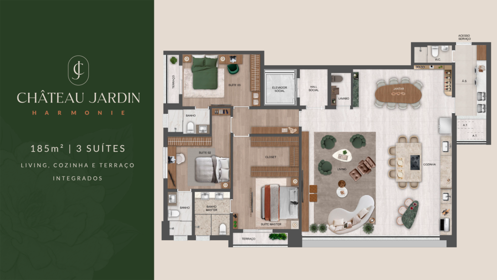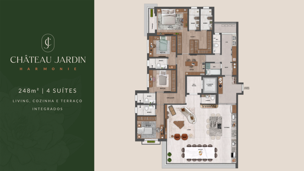 — Torre Harmonie: 185m² a 248m² (3 ou 4 suítes)
